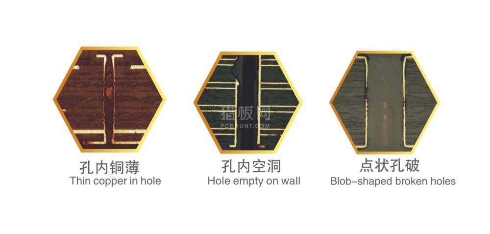 线路板电阻偏差在1毫欧姆以上时,孔的状况已经非常差,尤其对目前的高层板和汽车类板,必须保证孔铜厚度100%符合要求??锥钥撞馐孕枰诳椎谋呱贤敝至娇挪馐哉?,传统的通/专用测试机无法实现在孔边上同时种两颗测试针,而飞针测试机测试探头结构可以确保通孔有效测试。因此,测试通孔问题时,必须使用孔对孔测试方式。可以检测以下孔铜异常: