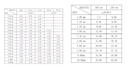 通过这两个表,能得到的PCB布线经验是:增加铜厚、加宽线径、提高PCB散热能够增强PCB的载流能力。
