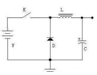 电路由开关K(实际电路中为三极管或者场效应管),续流二极管D,储能电感L,滤波电容C等构成。当开关闭合时,电源通过开关K.电感L给负载供电,并将部分电能储存在电感L以及电容C中。